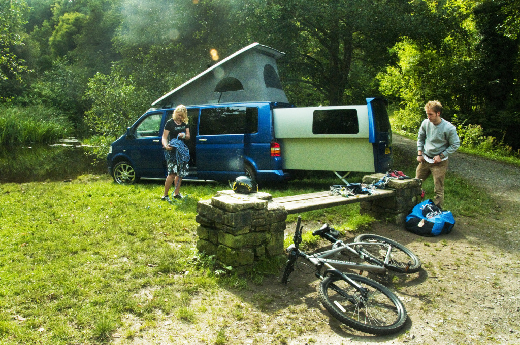 When fully extended and roof elevated this van offers similar interior space to a full size motor home. The van offers a kitchenette, a large bed that can be folded down to give a comfortable living space. However, it is missing a wash room so you need to park close to camping amenities.