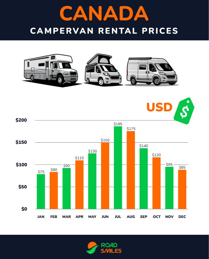 Aluguer de Campervan no Canadá Preços médios sazonais 2025 / 2026